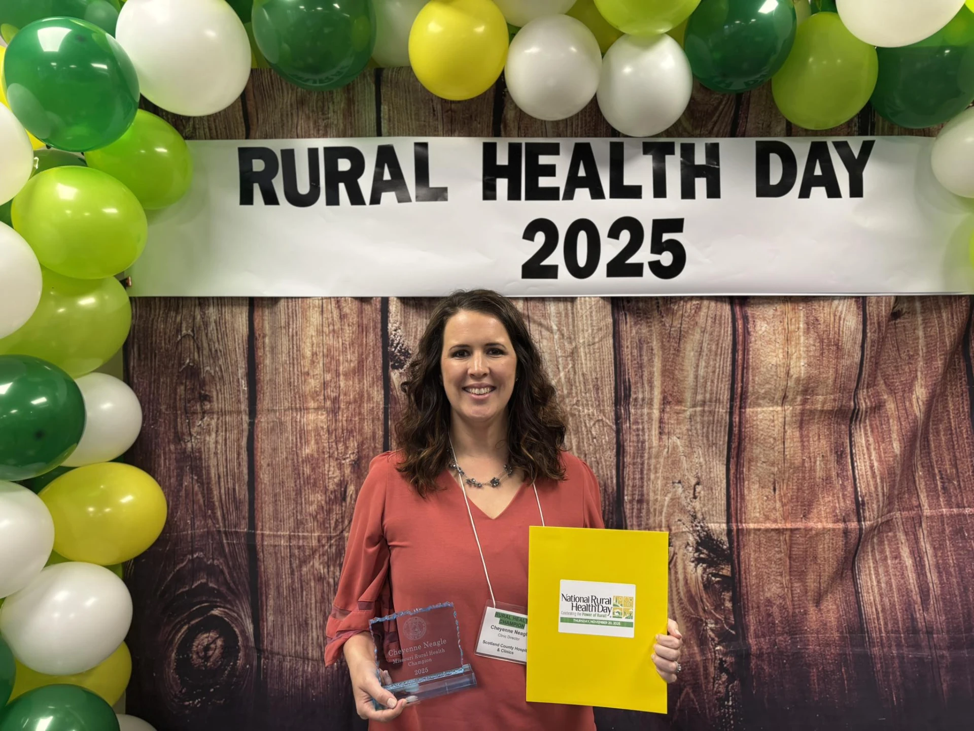 Memphis, MO- Cheyenne Neagle, RN, BSN, CRHCP, Director of the Rural Health Clinics at Scotland County Hospital in Memphis has received the 2025 Rural Health Champion Award from the Missouri Department of Health and Senior Services, Office of Rural Health and Primary Care. The award recognizes Neagle’s visionary leadership and tireless dedication to improving the billing/finances and processes of the Rural Health Clinics that are owned and operated by Scotland County Hospital. This recognition reflects a deep commitment to improving healthcare access and outcomes for the rural communities served by Scotland County Hospital in Northeast Missouri.